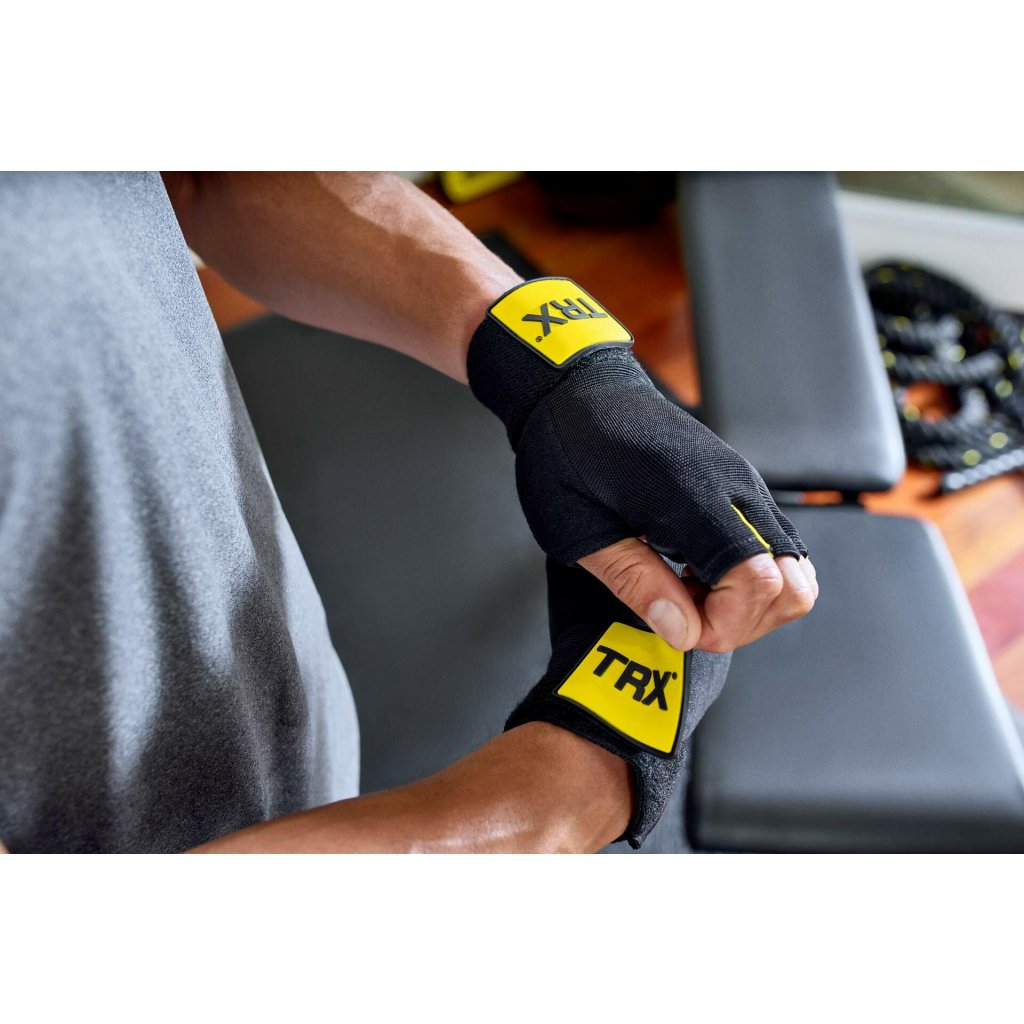 TRX® Fitness Rukavice jsou díky kvalitní kožence na dlaních odolné proti poškrábání, či jinému poškození. Chrání dlaně před oděrkami, škrábanci či puchýři, které si můžete při cvičení způsobit. Široký pásek zajišťuje pohodlnou fixaci zápěstí. Jsou vhodné na silový trénink s činkami, ketllebelly nebo strength bandy.