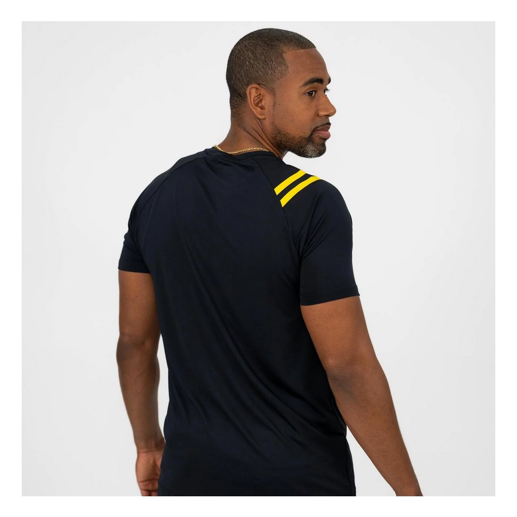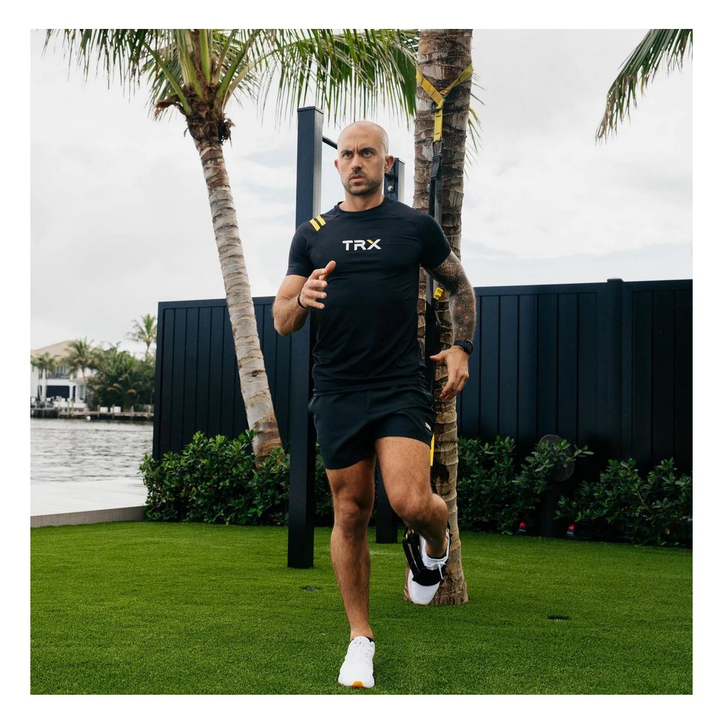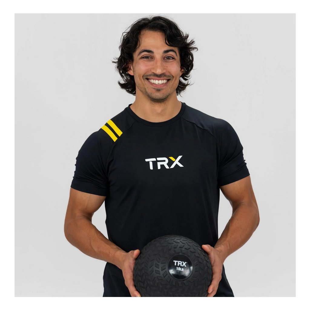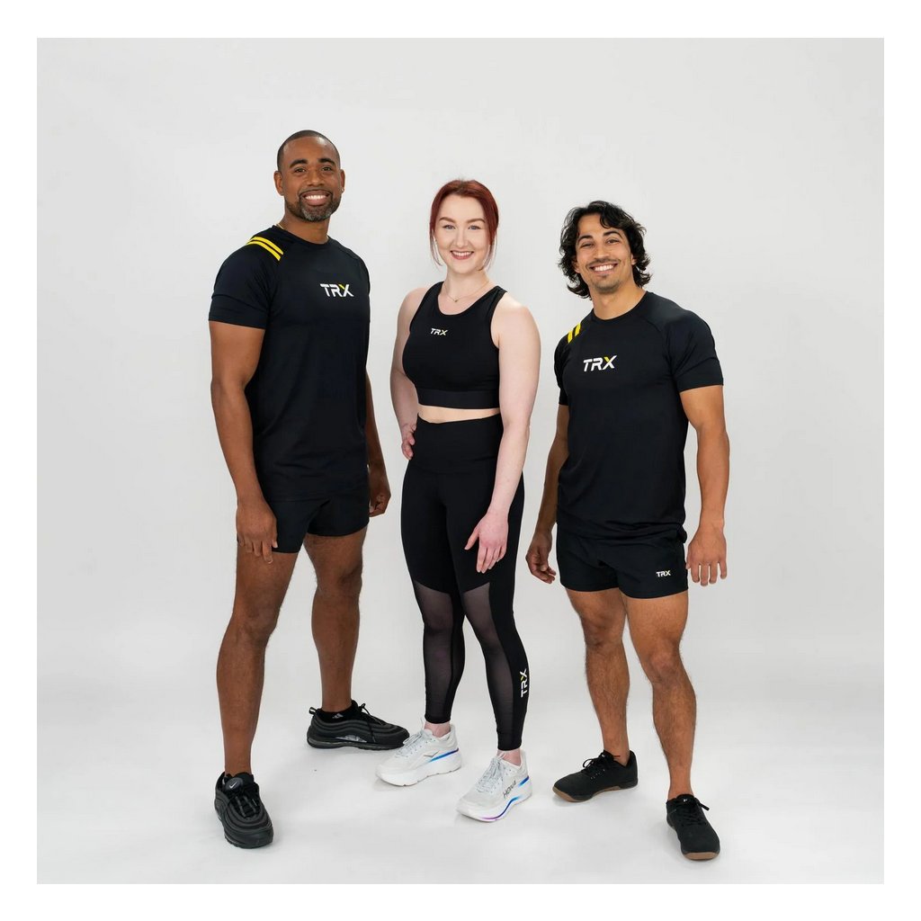 Triko má decentní matné silikonové detaily – logo TRX na hrudi a pruh s ikonickou žlutou barvou na rameni. Štíhlý střih zvýrazňuje postavu, aniž by omezoval v pohybu. Tepelně natištěný štítek uvnitř trika zajišťuje maximální pohodlí bez podráždění.