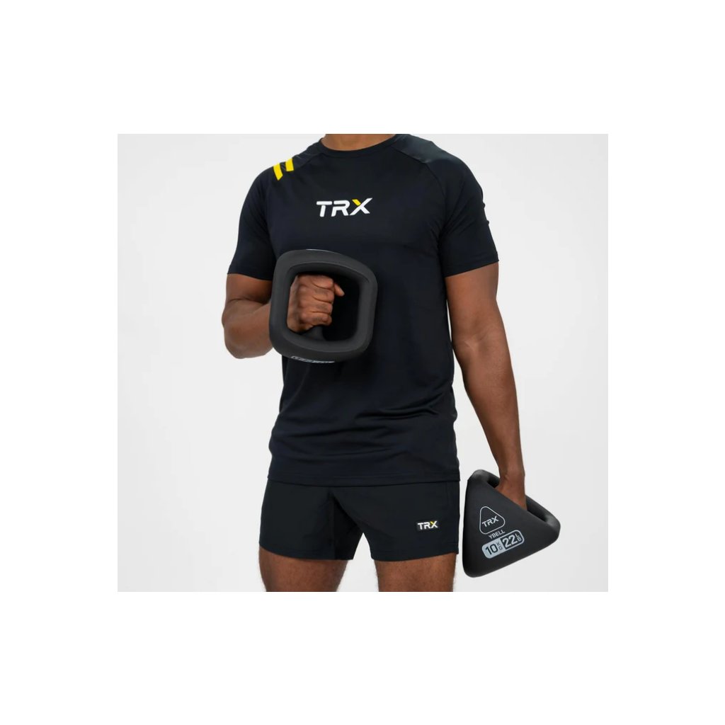 Stylový PVC TRX® nápis na stehně a decentní žlutý detail na šňůrkách podtrhují moderní sportovní vzhled.