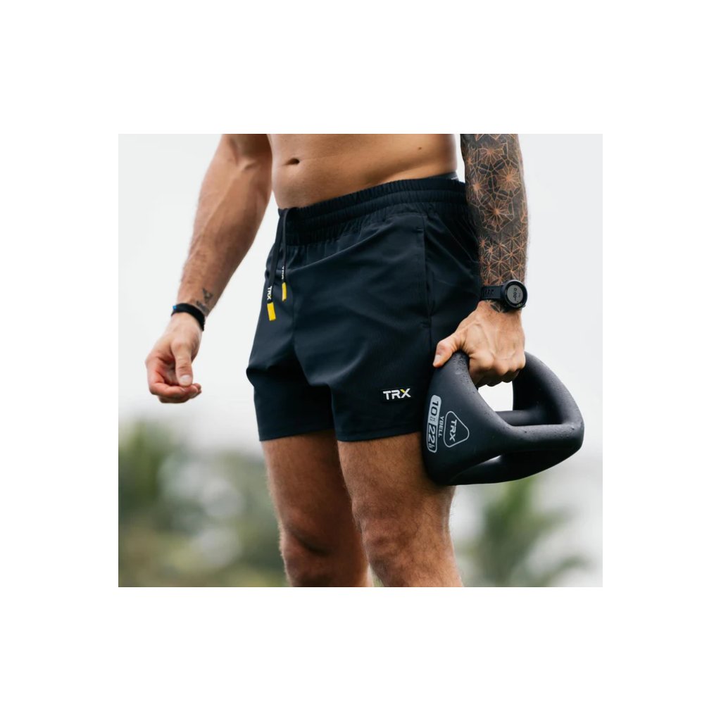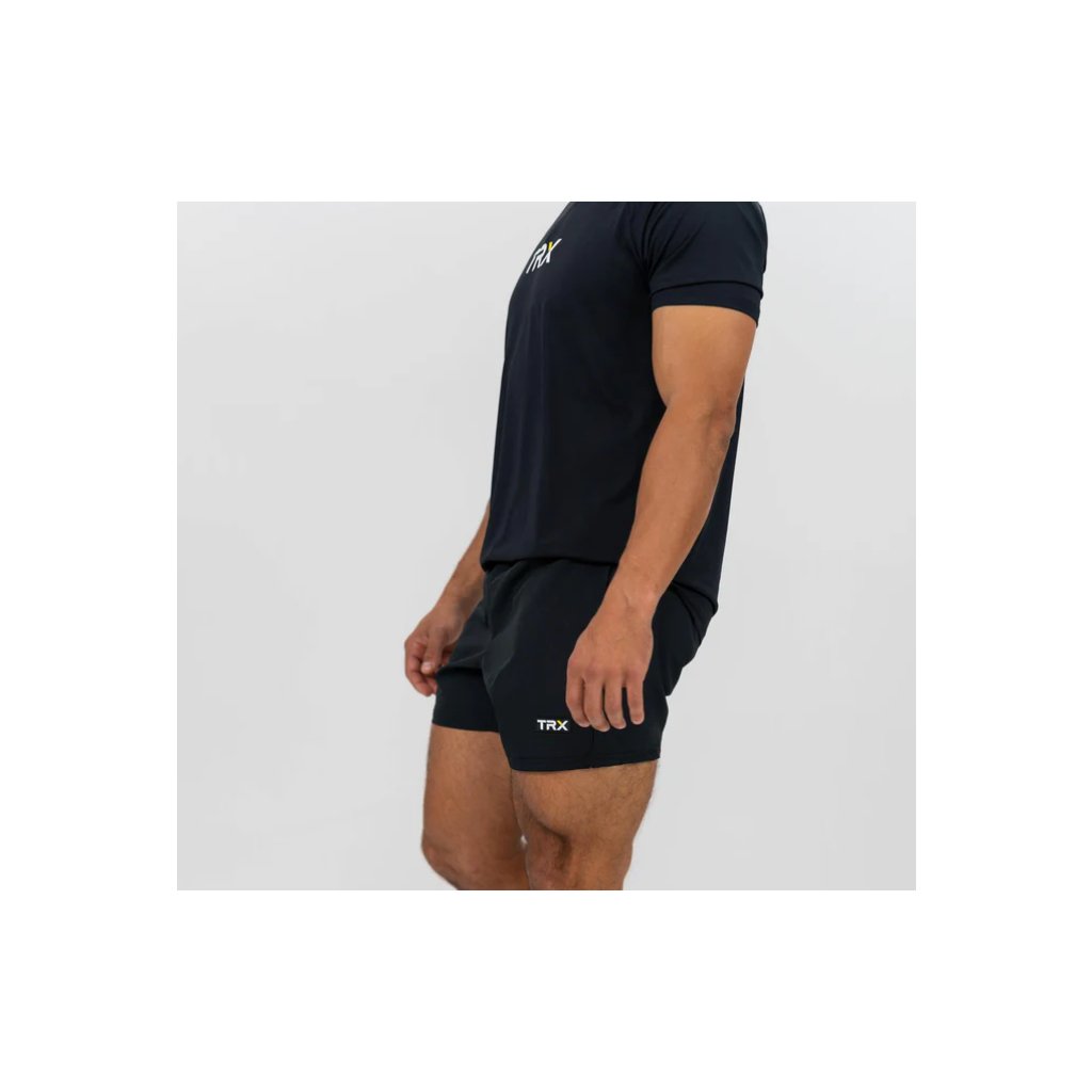 Stylový PVC TRX® nápis na stehně a decentní žlutý detail na šňůrkách podtrhují moderní sportovní vzhled.
