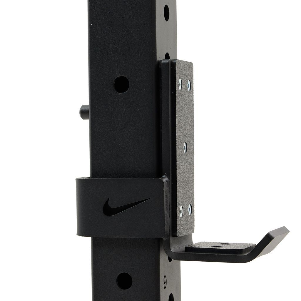 Integrovaná hrazda s průměrem 1,25" umožňuje bezpečný a komfortní úchop při shybech. Otvory v stojinách jsou rozmístěny po 2" a opatřeny laserovým značením, které výrazně zrychluje nastavení výšky J-cupů a bezpečnostních prvků.