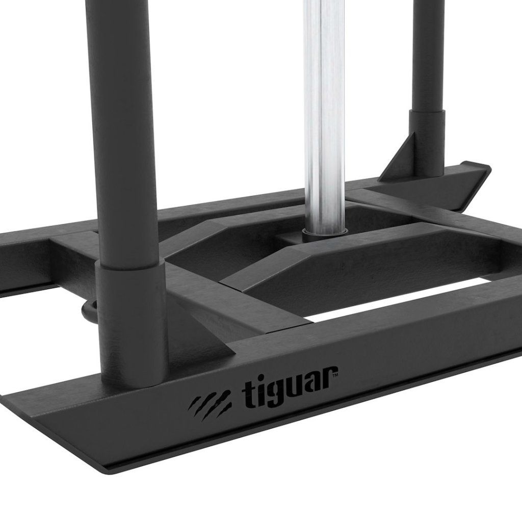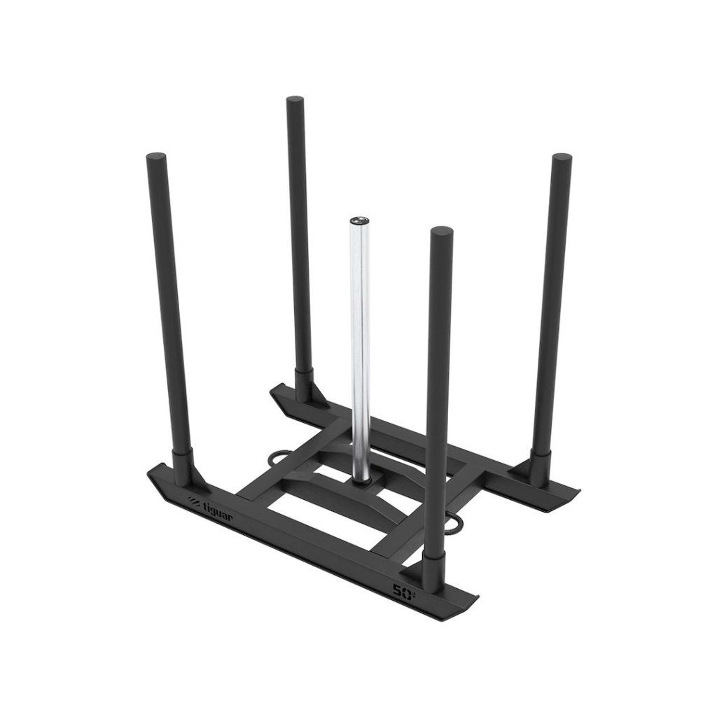 Odolná konstrukce pro intenzivní zatížení. Saně jsou vyrobeny z pevné oceli, která bez problémů zvládá dynamické zatížení i každodenní použití v provozu. Vlastní hmotnost 50 kg zajišťuje stabilní základ, který lze dále navyšovat pomocí kotoučů.