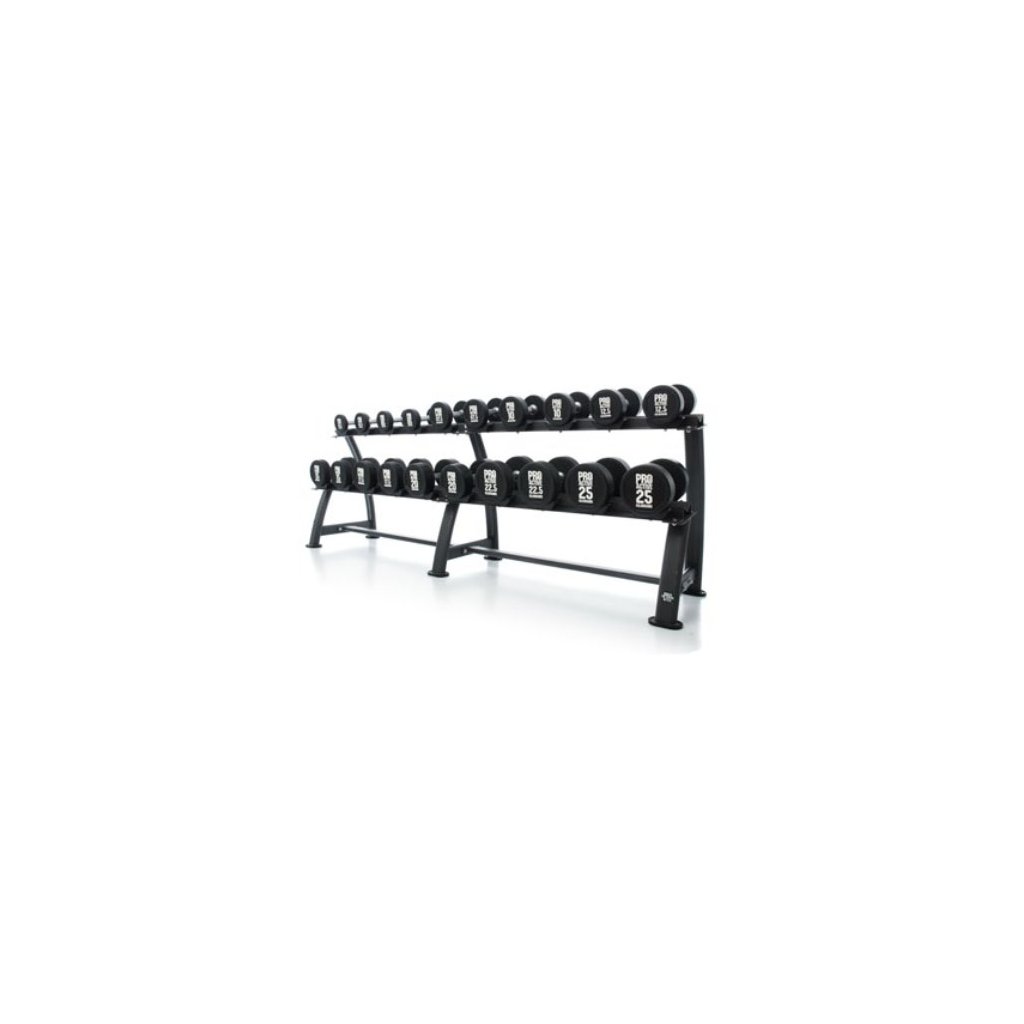 Místo odložení činek na zem, je snadno dejte do praktického stojanu. Tento stojan je přímo šitý na míru pro uretanové jednoručky z řady PRO ACTIVE. Vejde se na něj 10 nebo 12 párů jednoruček Pro Active.