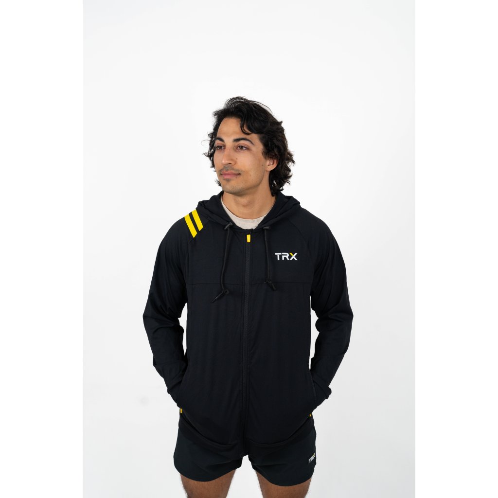 Mikina má stahovací kapuci, zipové kapsy a decentní TRX detaily ze silikonového potisku – včetně loga a taháčků zipu. Kombinace nylonu a elastanu zaručuje měkkost, elasticitu a odolnost.